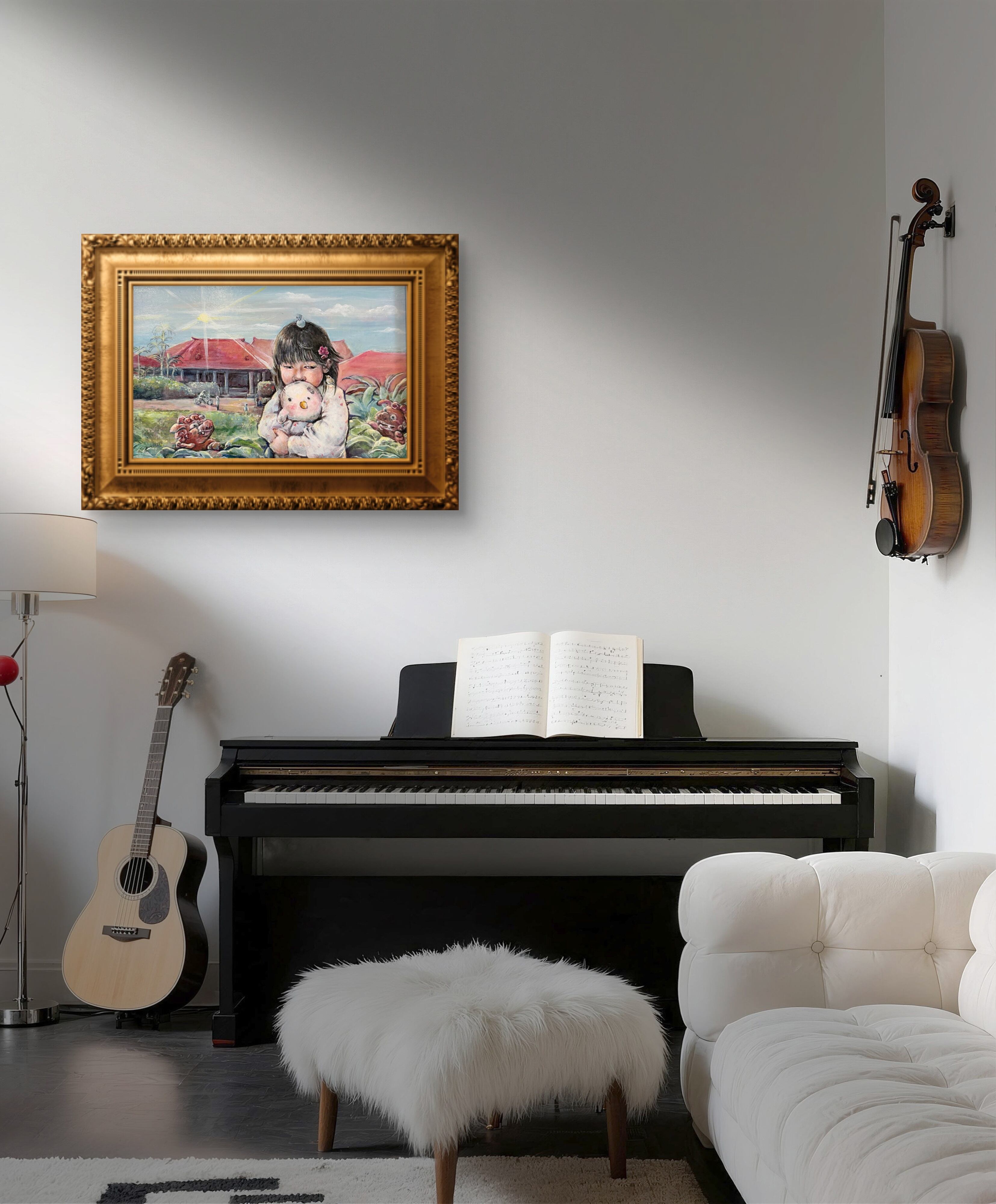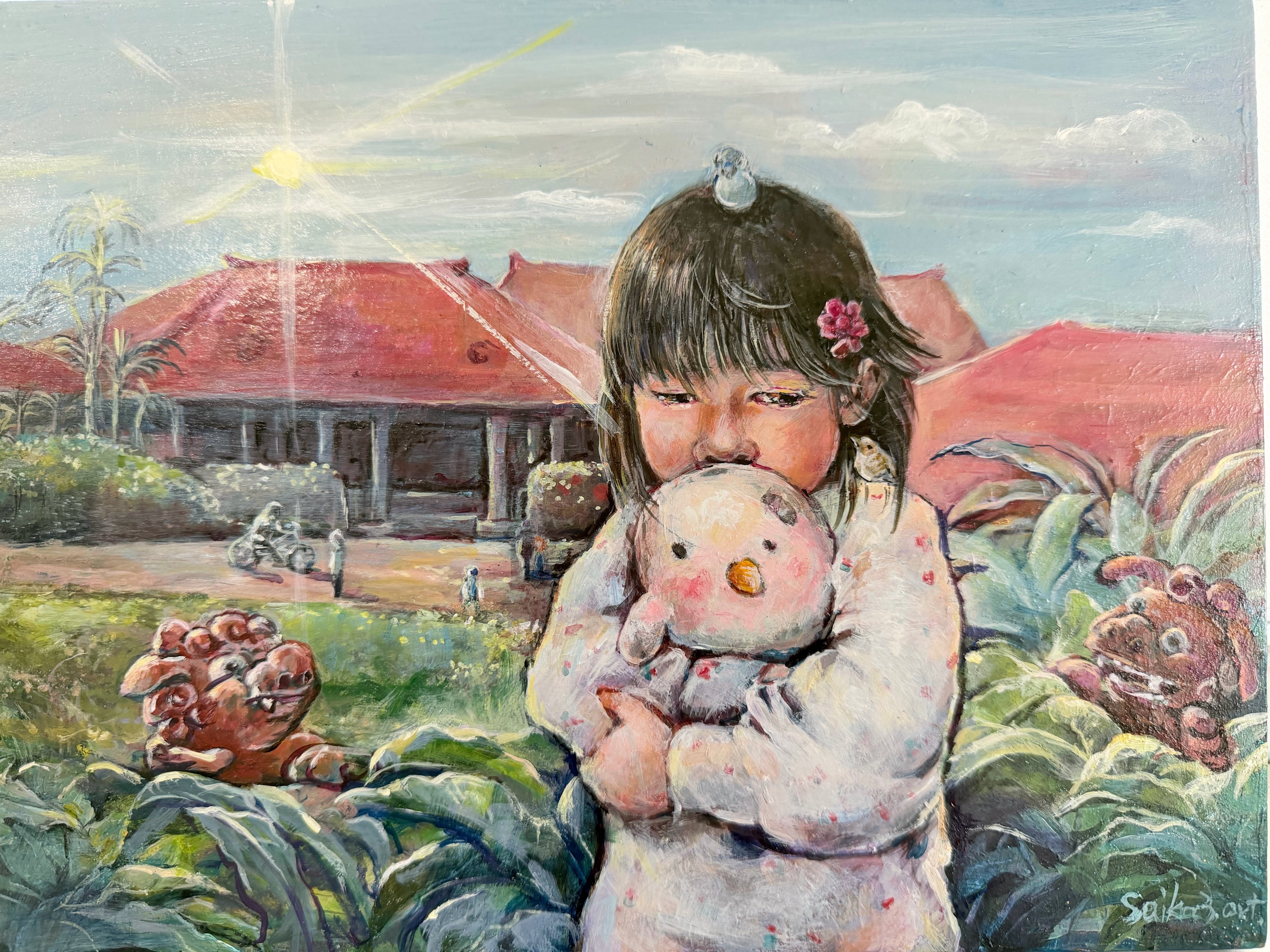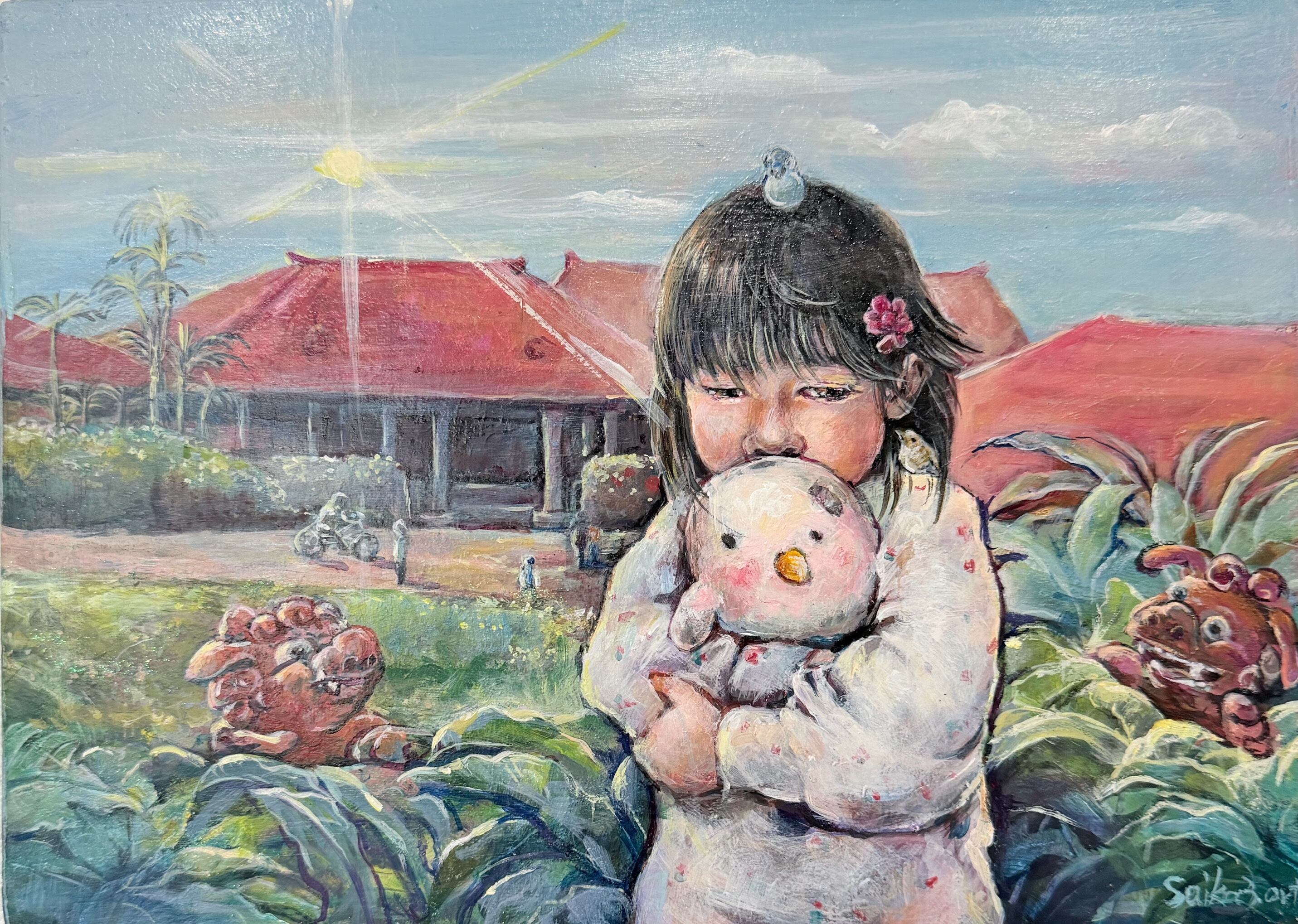 温かな色彩と柔らかなタッチで描かれたこの作品は、