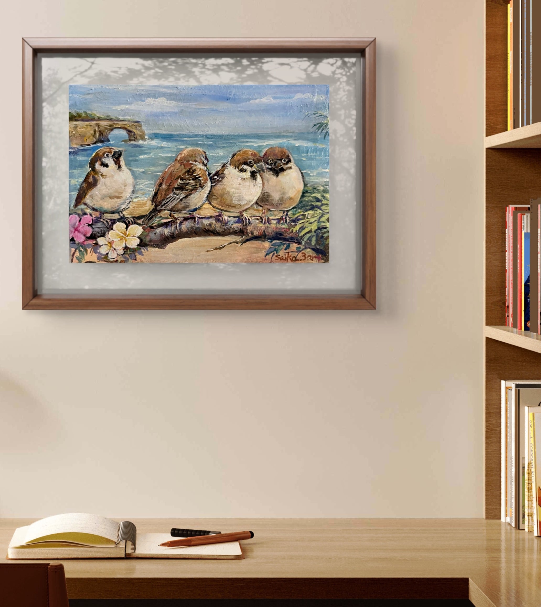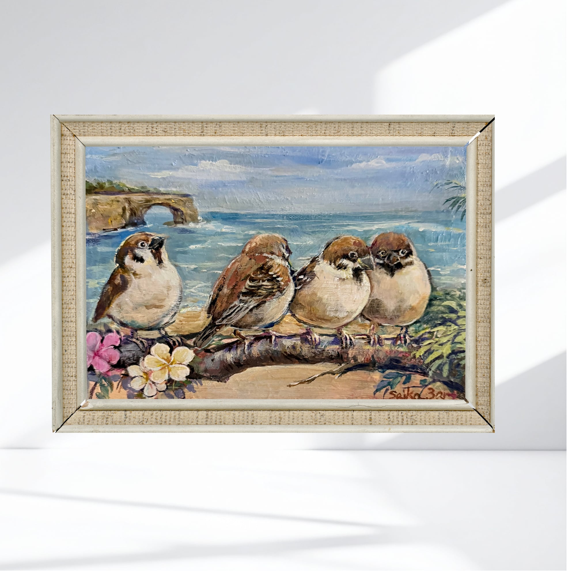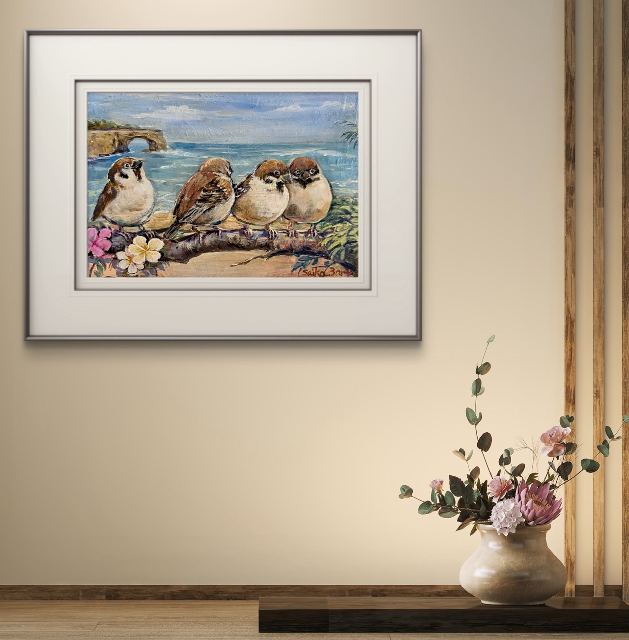 私の描く「海」の静寂と、小さな「命」のぬくもりが重なり合った、唯一無二の原画です。