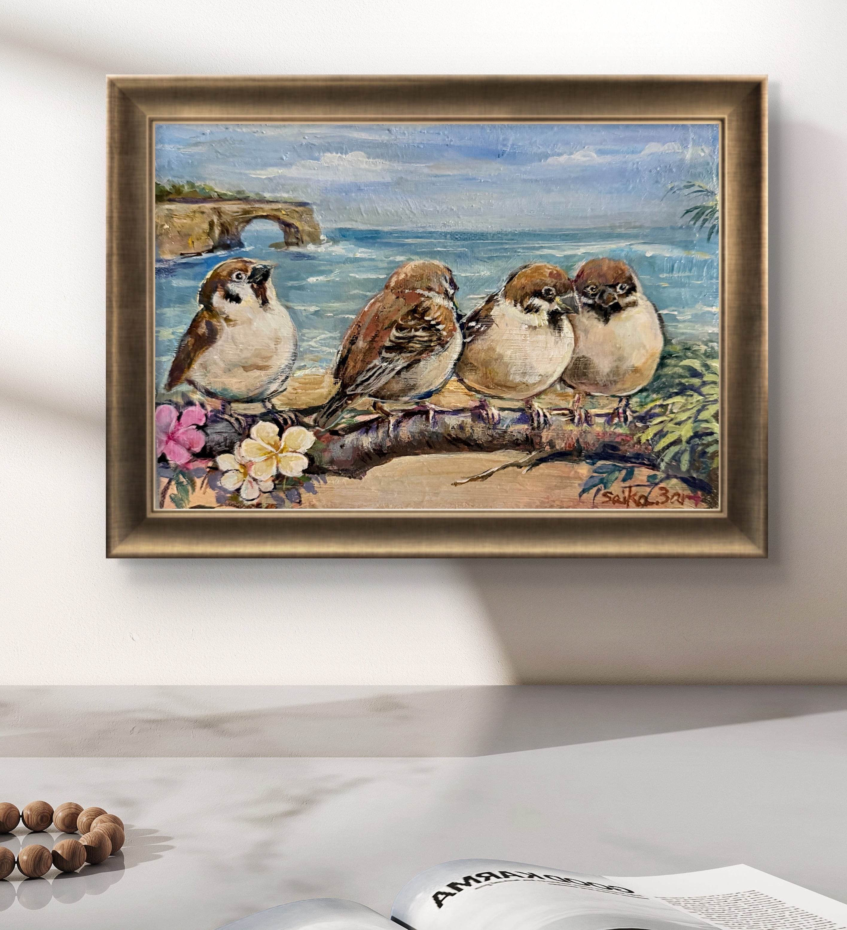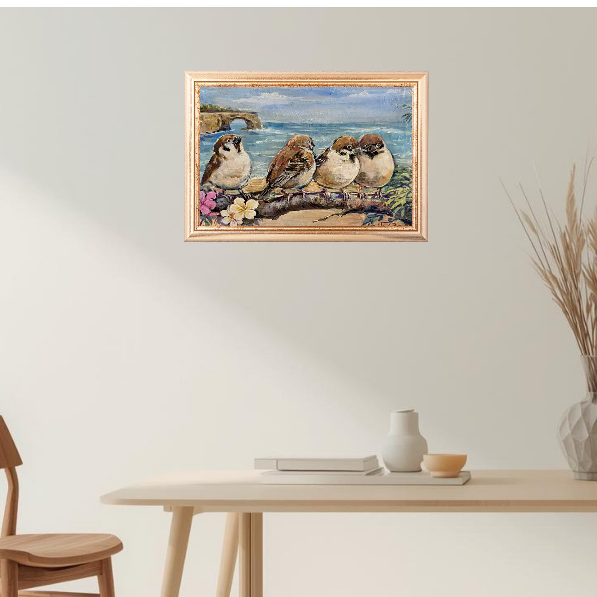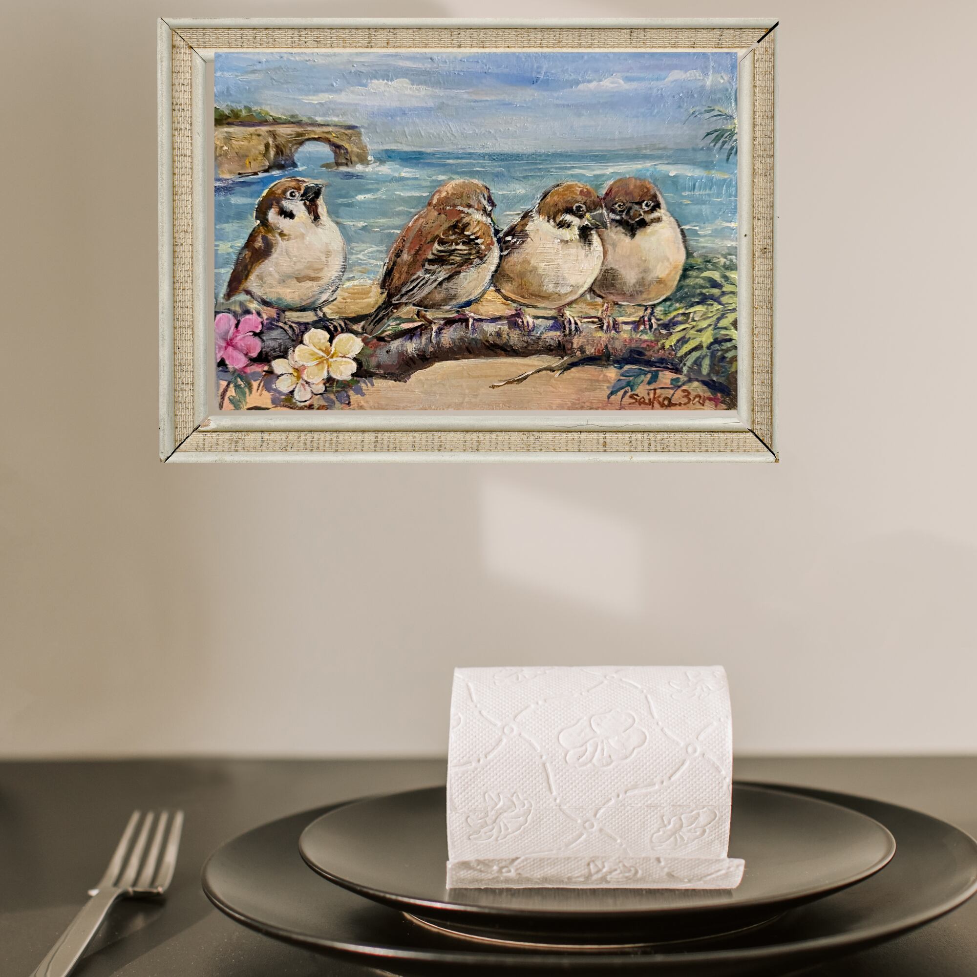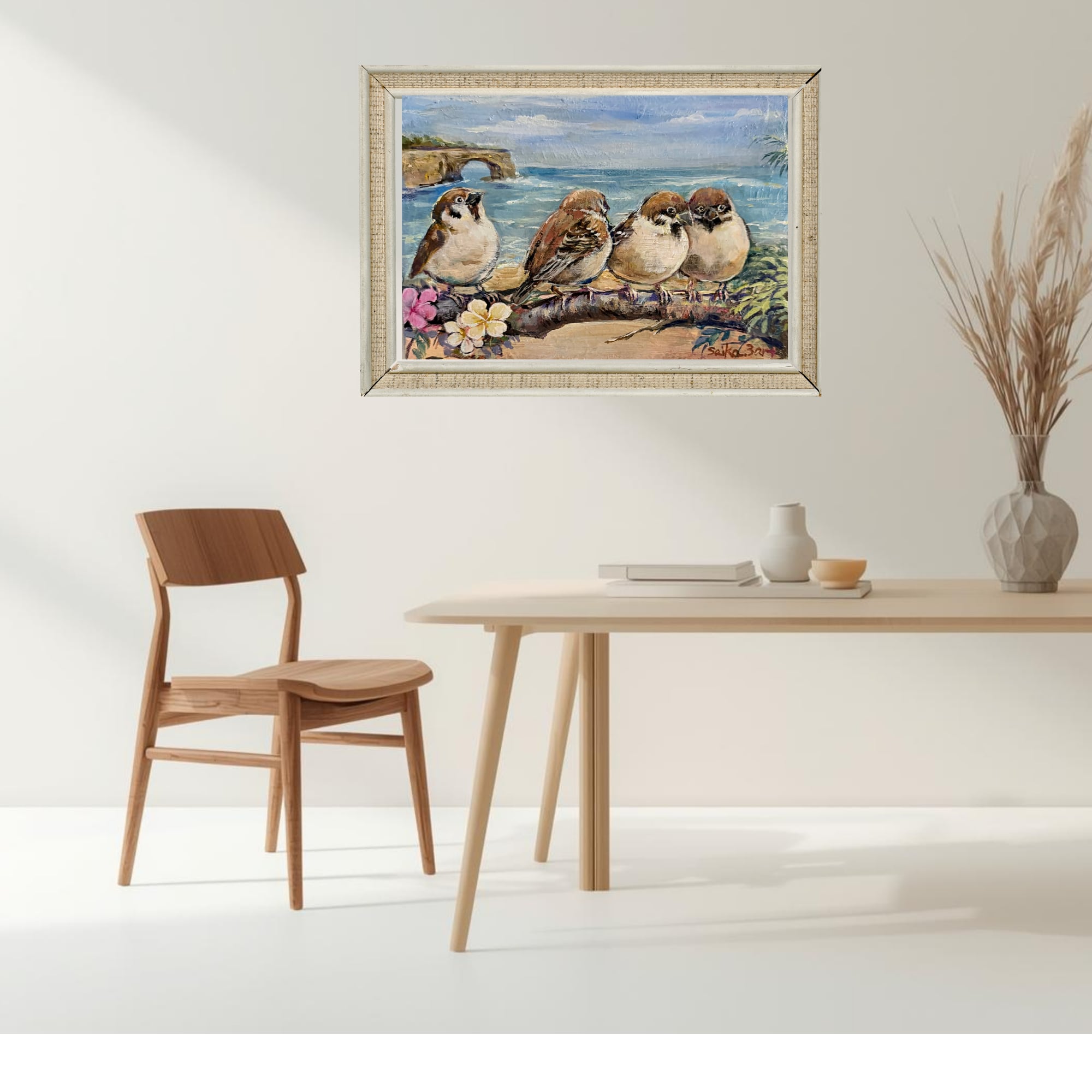 私の描く「海」の静寂と、小さな「命」のぬくもりが重なり合った、唯一無二の原画です。